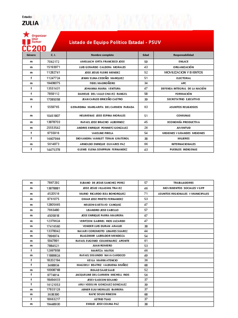 Listado de Equipo Político Estadal - PSUV