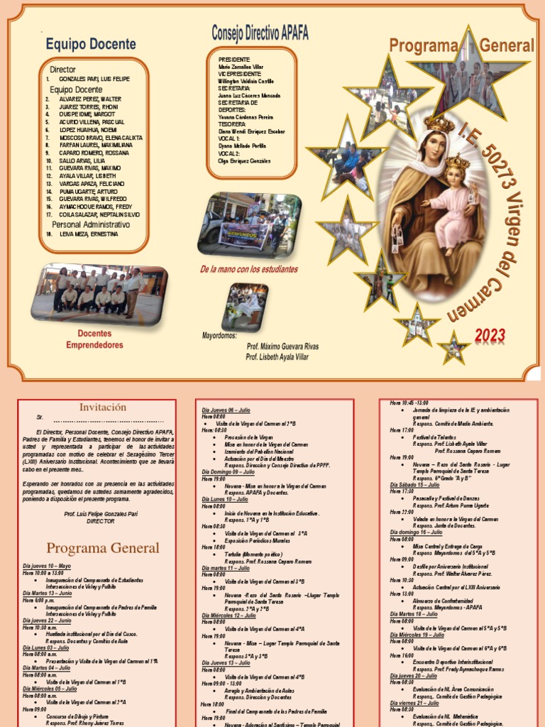 Padres de Familia y Estudiantes, tenemos el honor de invitar a • Procesión de la Virgen • Festival de Talentos