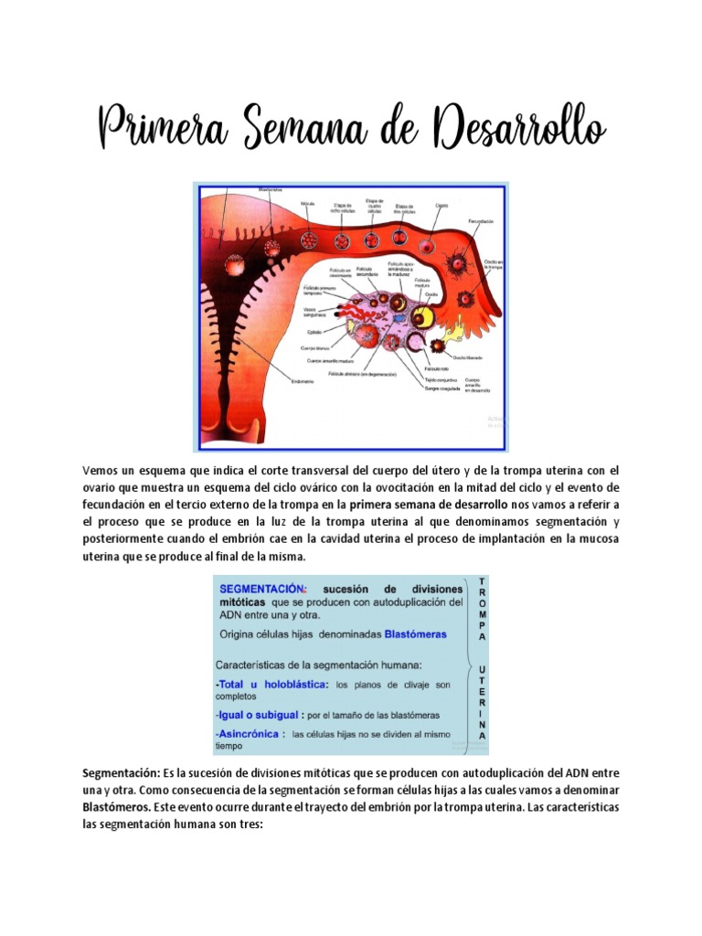 fecundación en el tercio externo de la trompa en la primera semana de desarrollo nos vamos a referir a