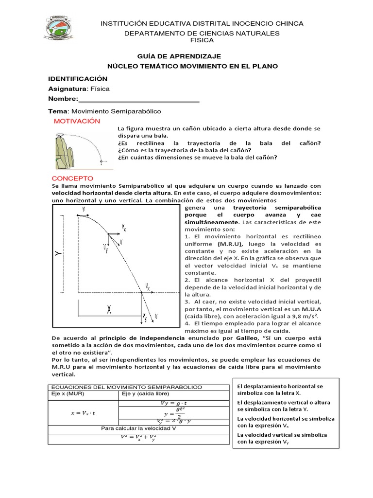 Se llama movimiento Semiparabólico al que adquiere un cuerpo cuando es lanzado con