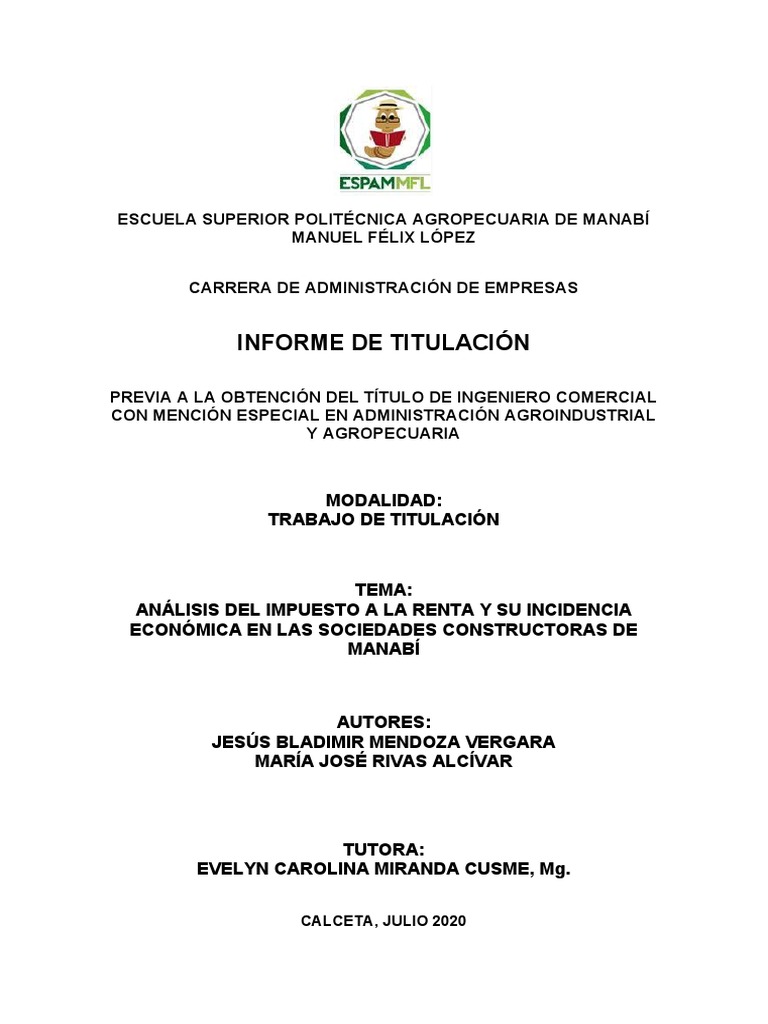 ANÁLISIS DEL IMPUESTO A LA RENTA Y SU INCIDENCIA ECONÓMICA EN LAS