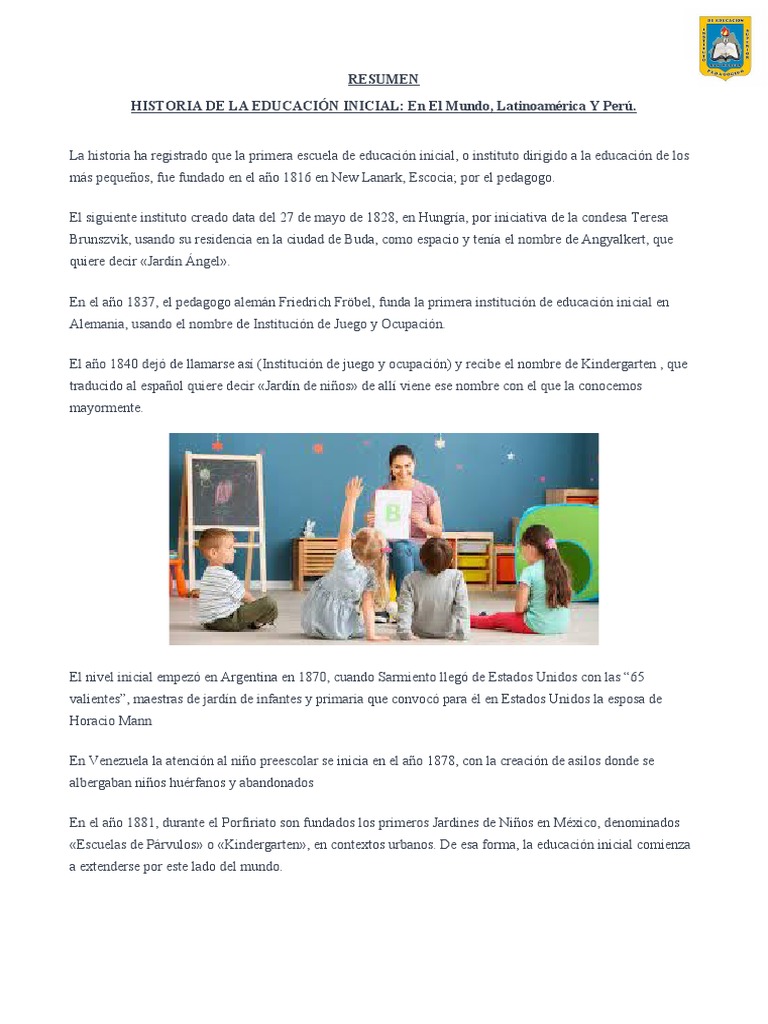 HISTORIA DE LA EDUCACIÓN INICIAL: En El Mundo, Latinoamérica Y Perú.