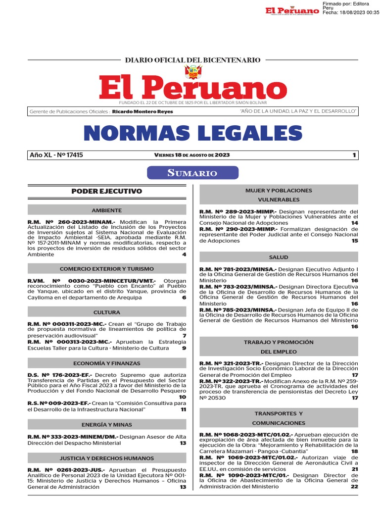 66 NORMAS LEGALES Viernes 18 de agosto de 2023 / El Peruano