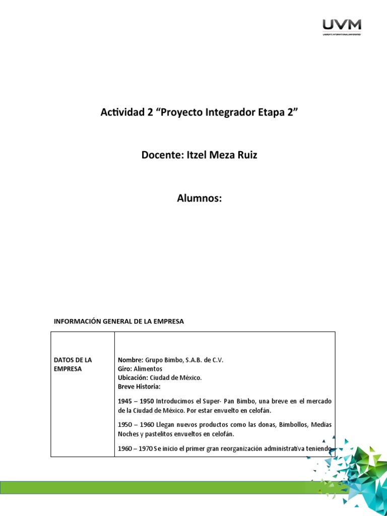 DATOS DE LA Nombre: Grupo Bimbo, S.A.B. de C.V.