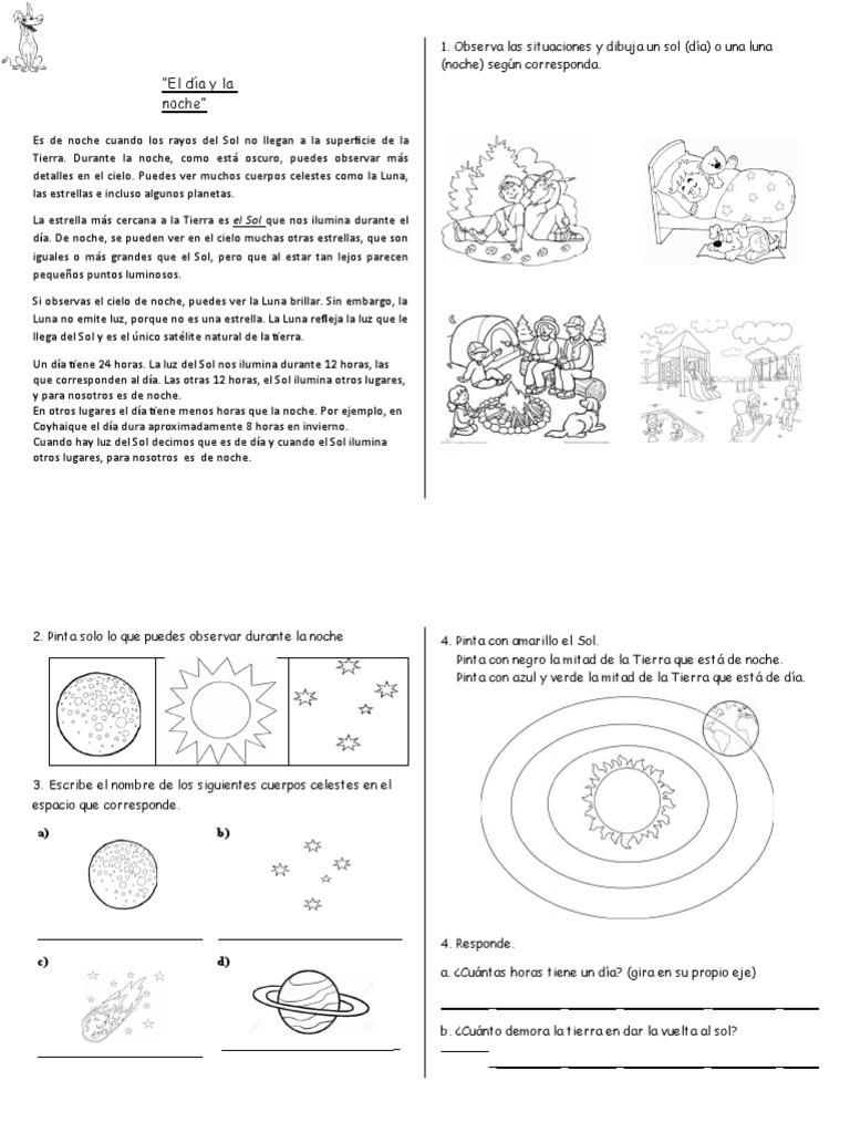 Observa los dibujos (pinta de amarilloel que representa el día)