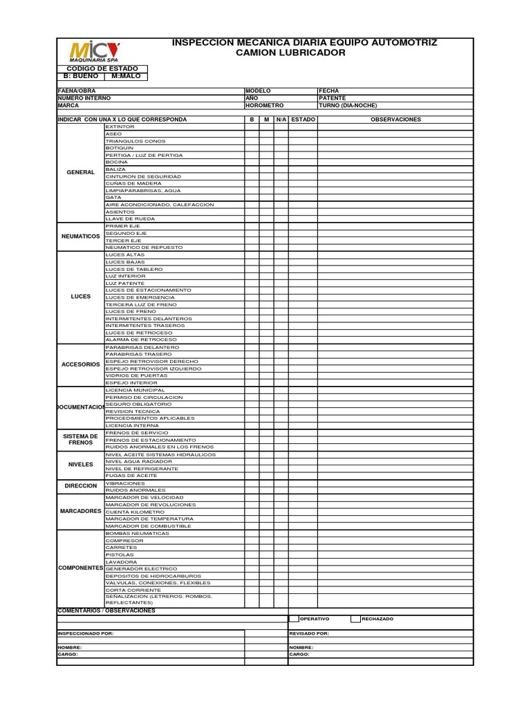 INSPECCION MECANICA DIARIA EQUIPO AUTOMOTRIZ