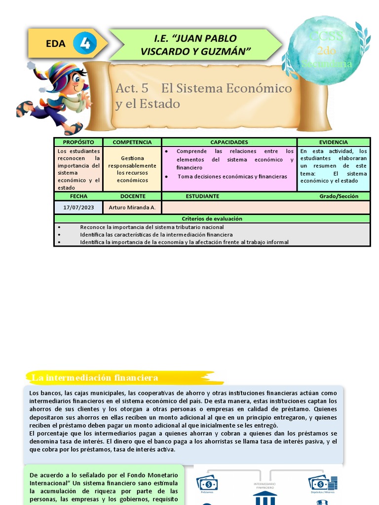 reconocen la Gestiona elementos del sistema económico y estudiantes elaboraran