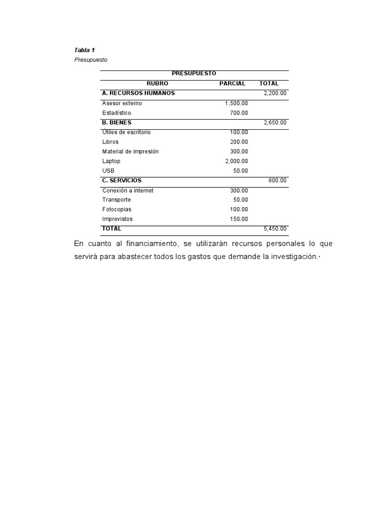 En cuanto al financiamiento, se utilizarán recursos personales lo que