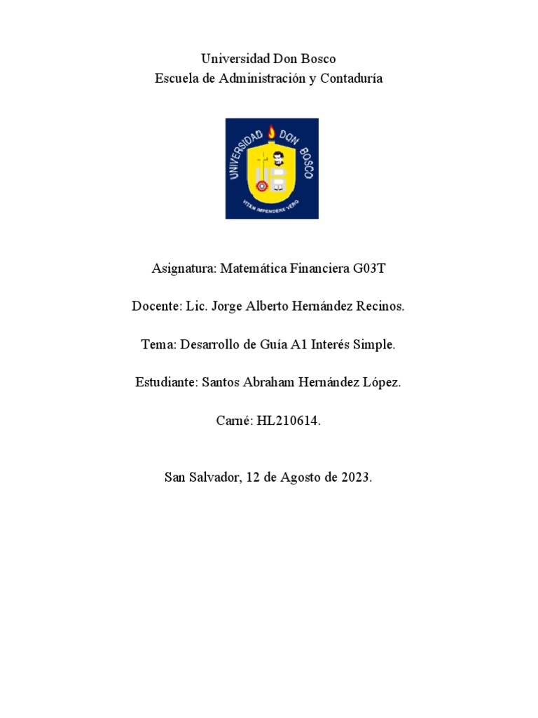Tema: Desarrollo de Guía A1 Interés Simple.