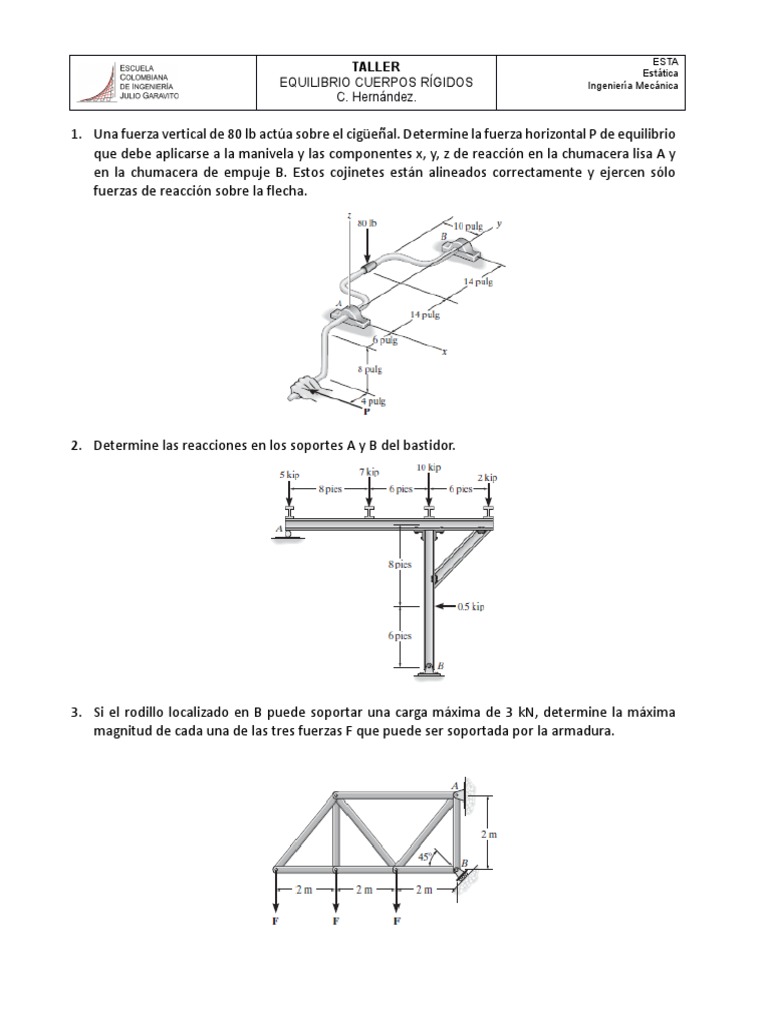 1. Una fuerza vertical de 80 lb actúa sobre el cigüeñal. Determine la fuerza horizontal P de equilibrio