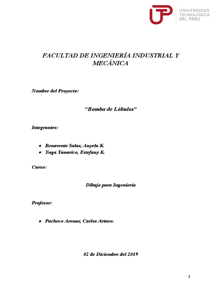 de la bomba de lóbulos, analizando cada una de sus propiedades, para esto utilizaremos