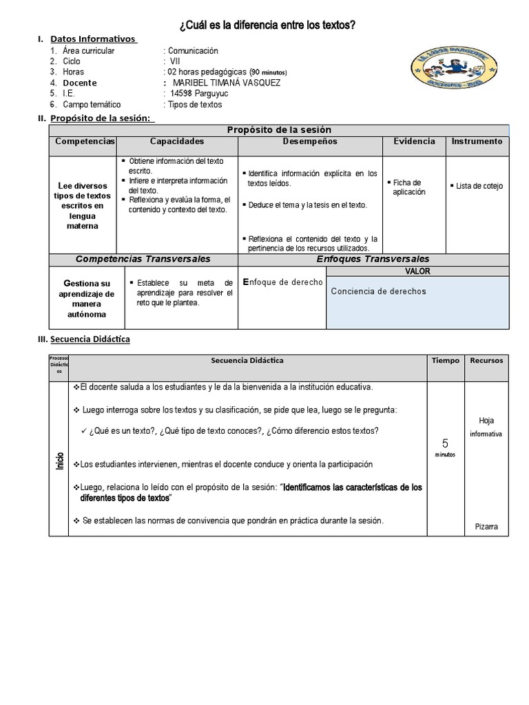 Secuencia Didáctica Tiempo Recursos