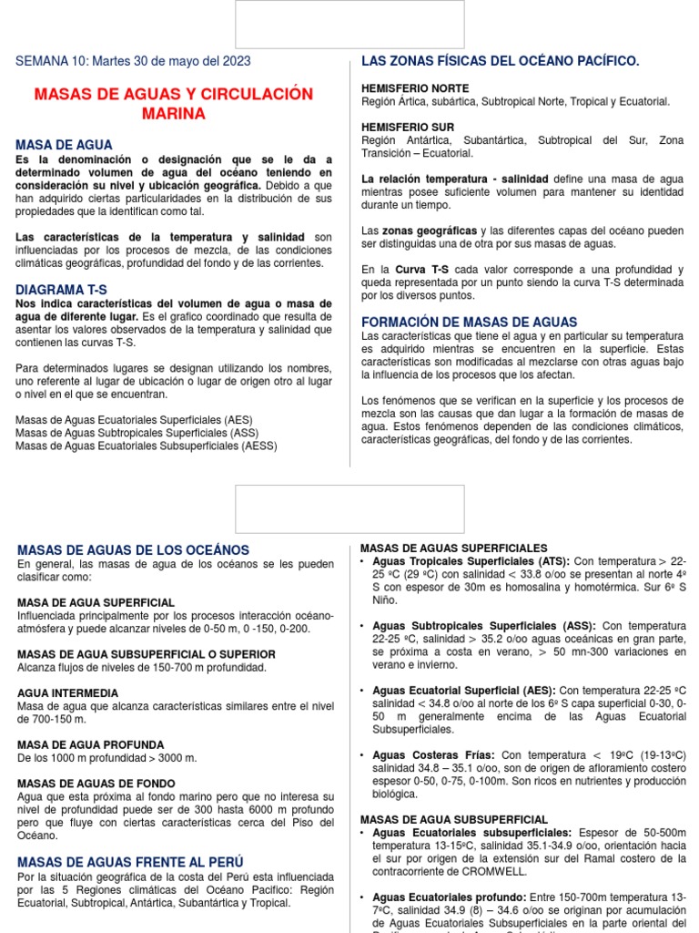 S con espesor de 30m es homosalina y homotérmica. Sur 6º S