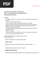 • Crear y generar salidas mediante una consulta SQL que contenga cadenas de