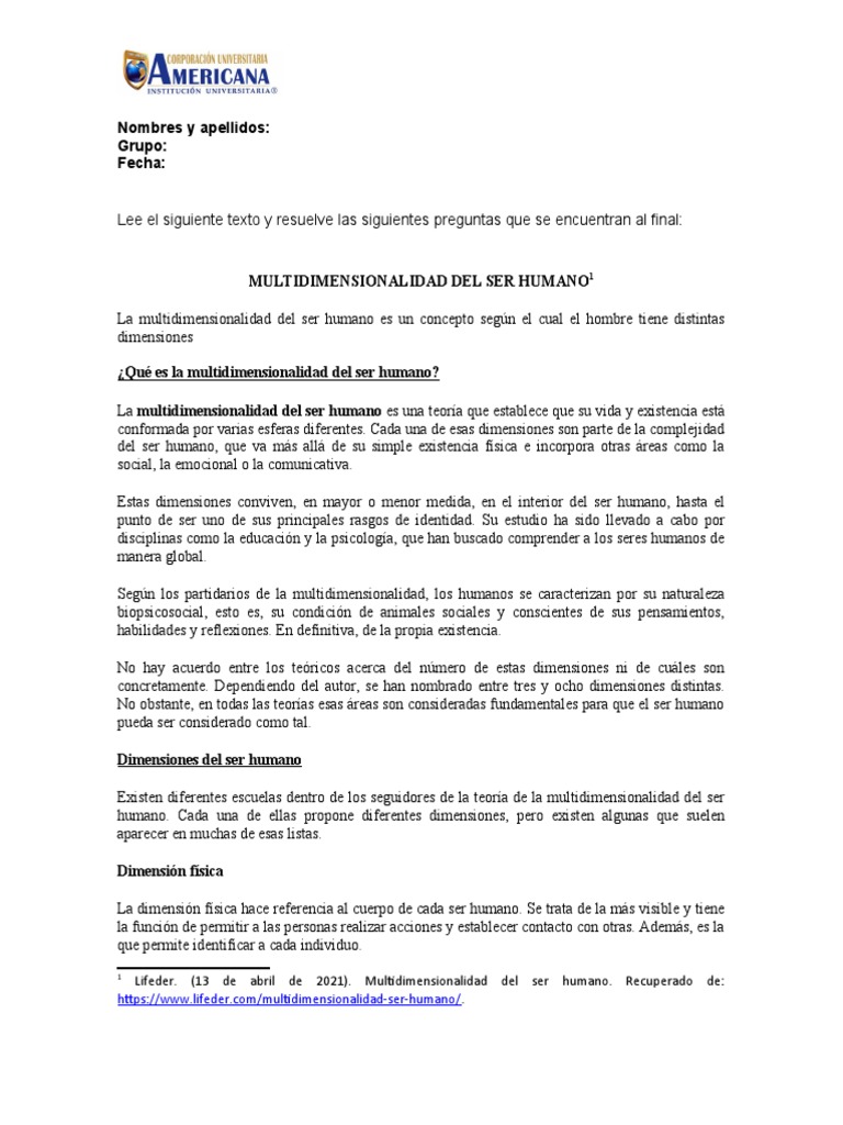 MULTIDIMENSIONALIDAD DEL SER HUMANO1