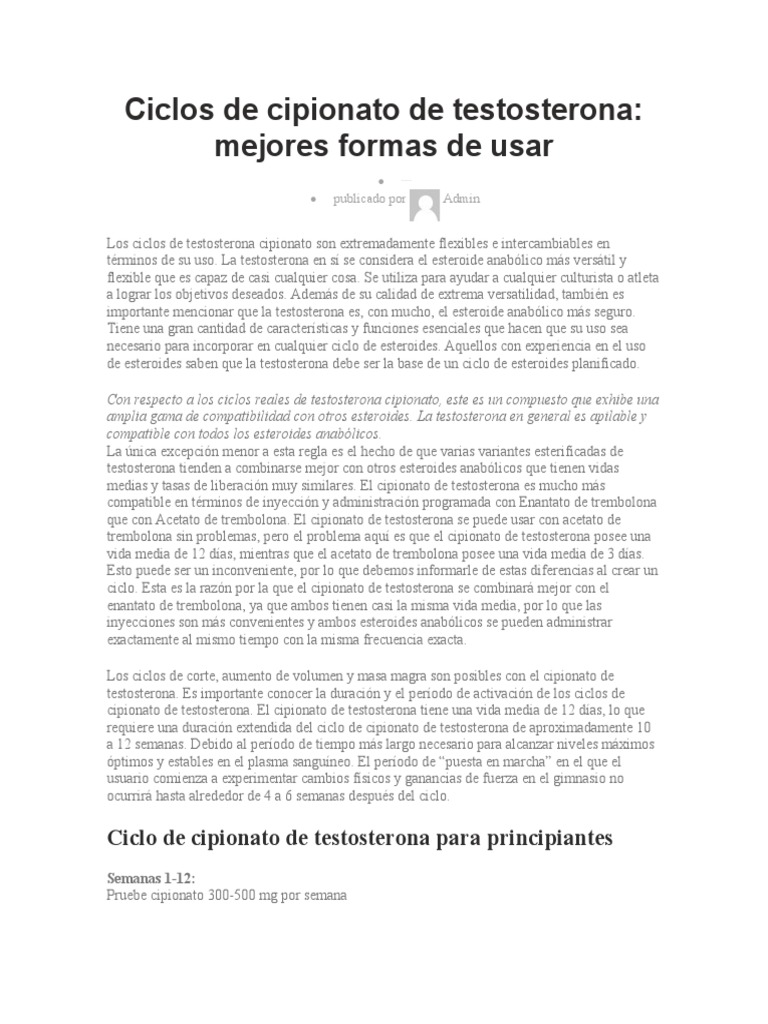 anabólicos, que también es el más básico de los ciclos de cipionato de testosterona para