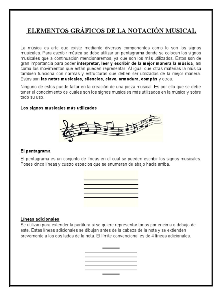 musicales. Para escribir música se debe utilizar un pentagrama donde se colocan los signos