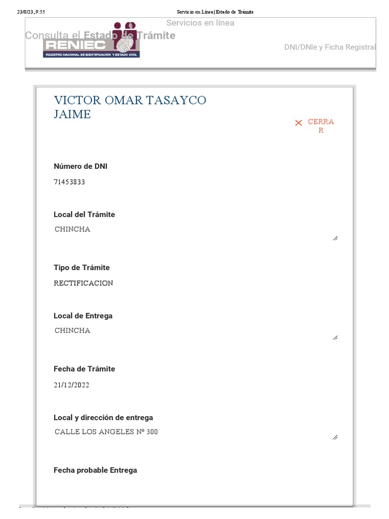 23/8/23, 9:55 Servicio en Línea| Estado de Trámite
