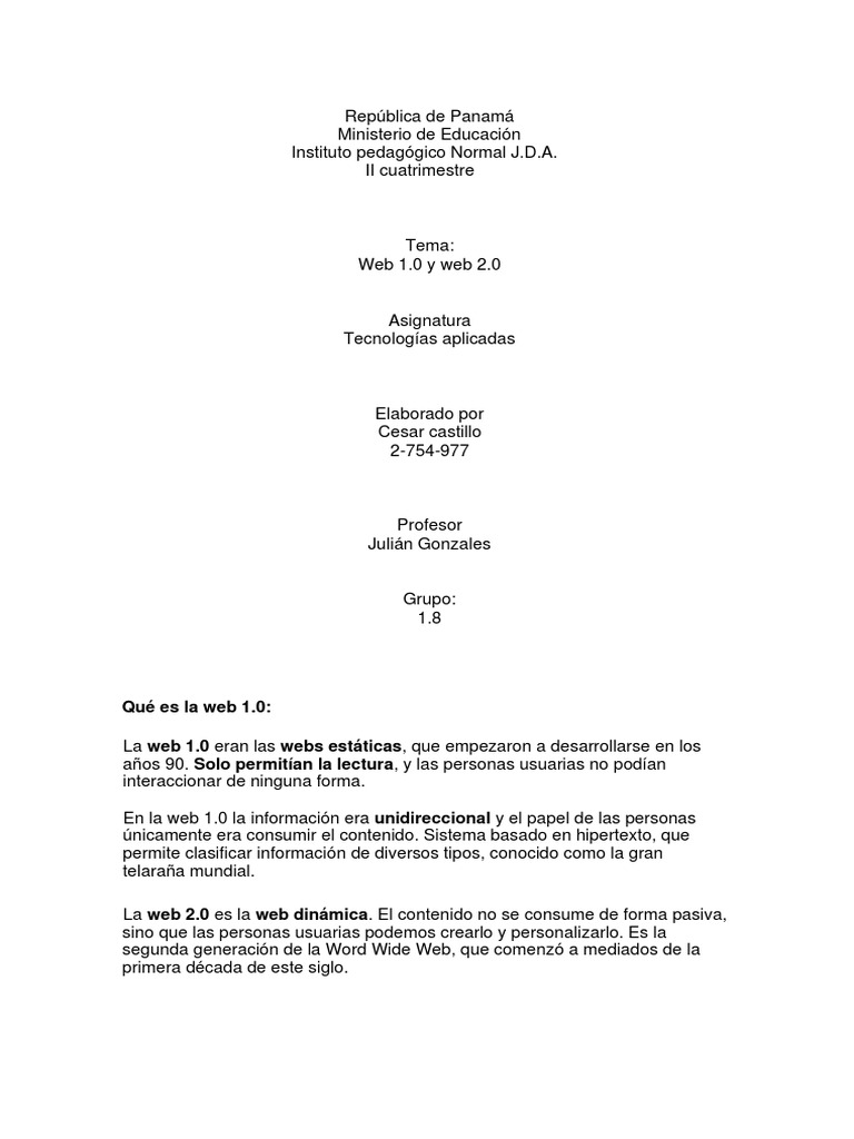 La web 1.0: es de solo lectura y que el usuario no puede interactuar con el
