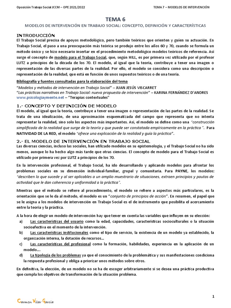 Oposición Trabajo Social JCCM – OPE 2021/2022 TEMA 7 – MODELOS DE INTERVENCIÓN
