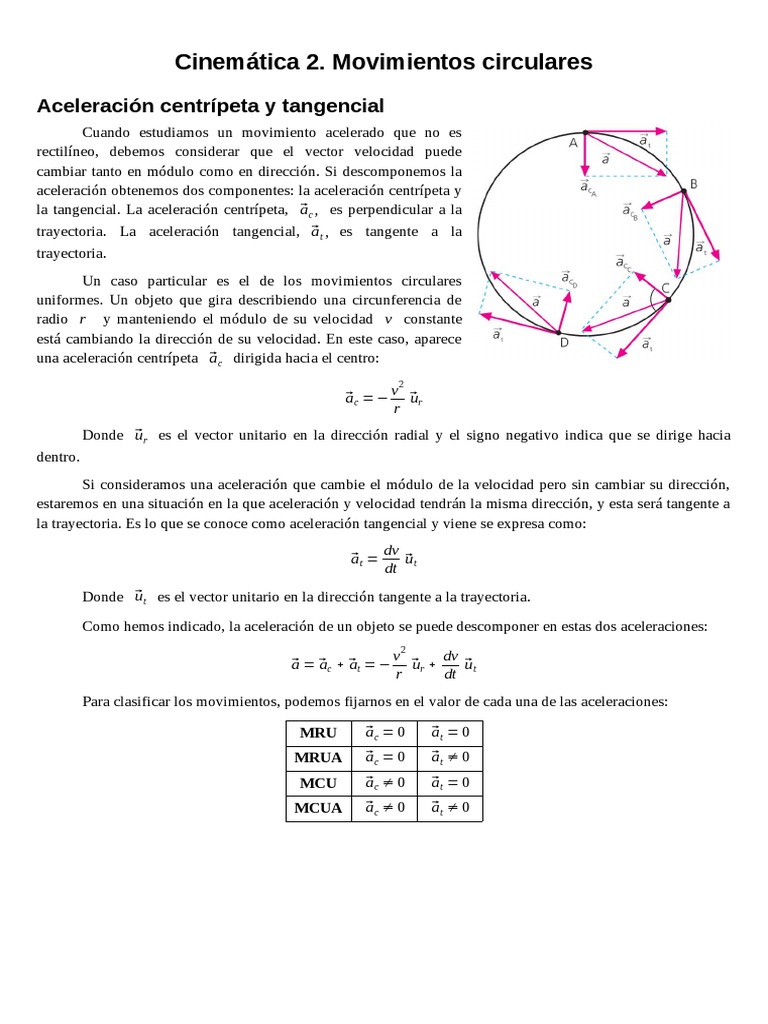 aceleración obtenemos dos componentes: la aceleración centrípeta y