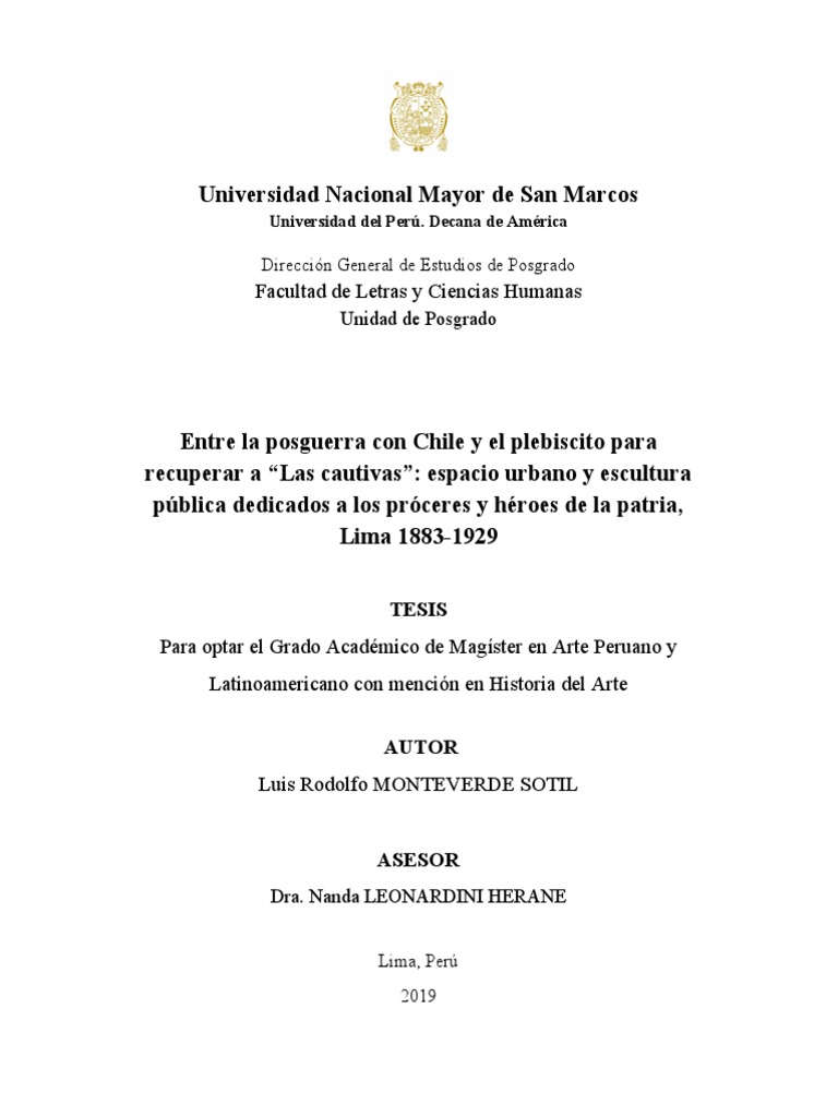 Para optar el Grado Académico de Magíster en Arte Peruano y