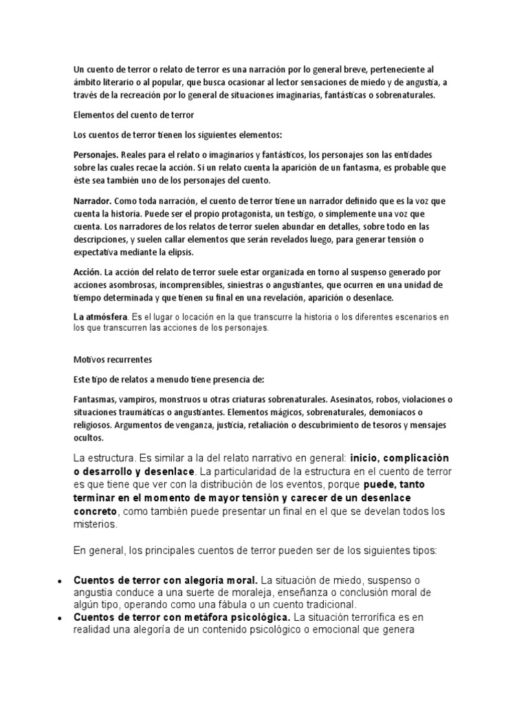 Los cuentos de terror tienen los siguientes elementos: