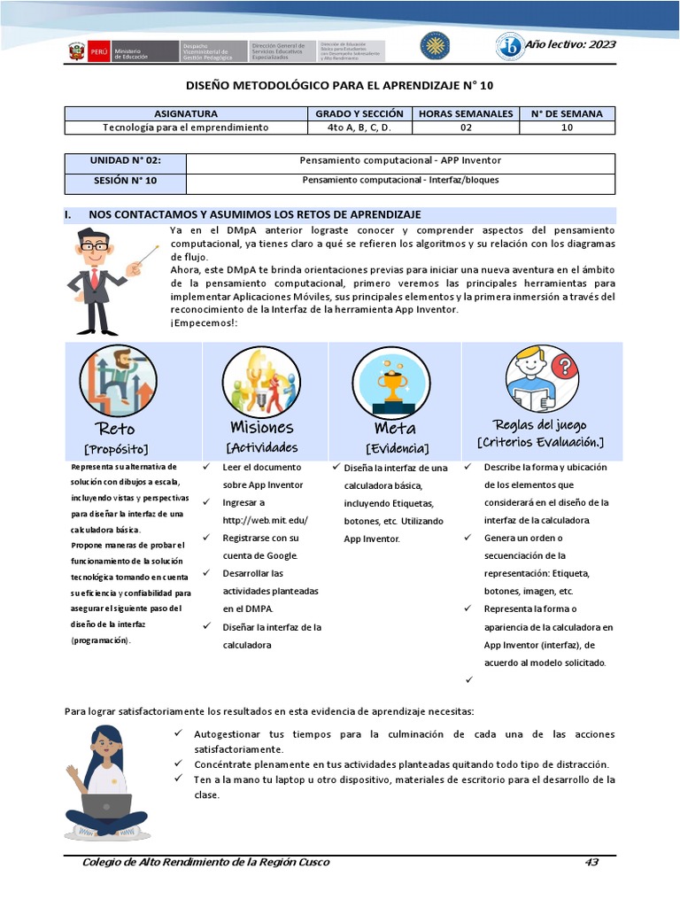 DISEÑO METODOLÓGICO PARA EL APRENDIZAJE N° 10