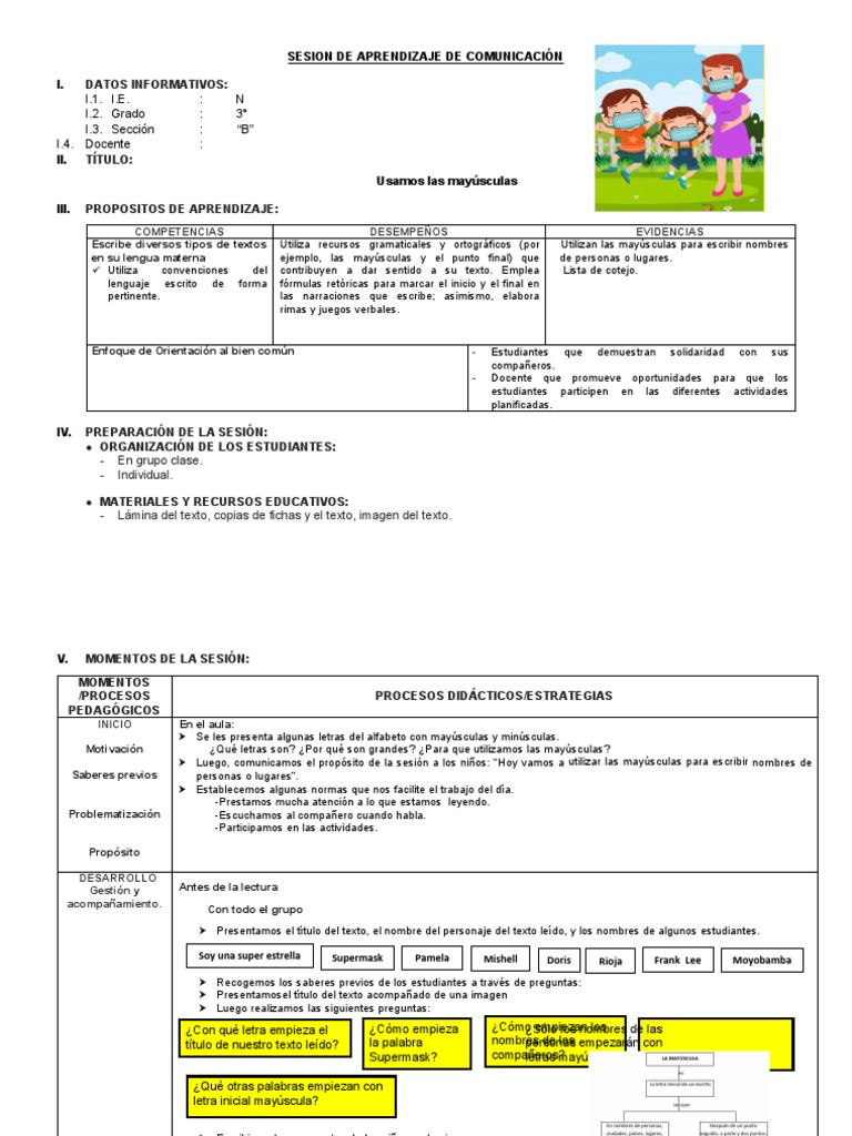 Sesión de aprendizaje: Leemos el texto: Usamos mayúsculas