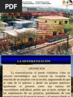 Introduccin ............................................................................. 2 Antecedentes tericos ................................................................ 3 La Sistematizacin .................................................................... 4 Qu es sistematizar? ............................................................. 4 Caractersticas de la sistematizacin ......................................... 5 a. Es un Proceso .................................................................. 5 b. c. d. e. g. Es Participativo ............................................................ 5 Ordena Datos ............................................................... 6 Memoria histrica ......................................................... 6 Anlisis e interpretacin ................................................ 7 Compartir y difundir ...................................................... 8