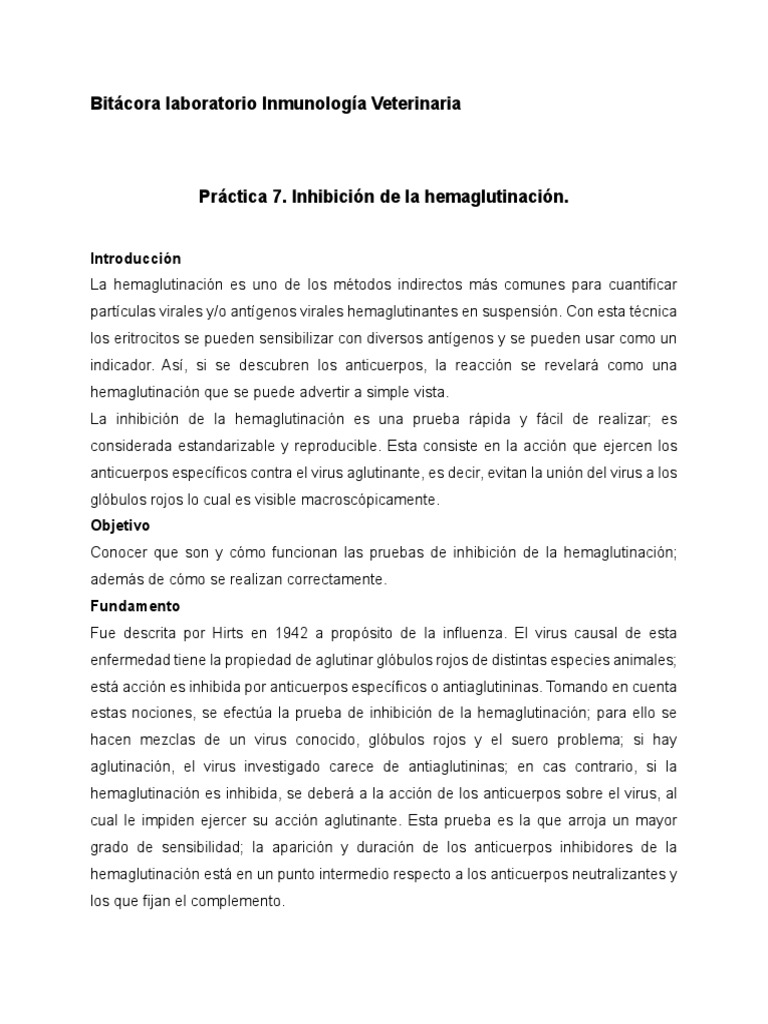 estas nociones, se efectúa la prueba de inhibición de la hemaglutinación; para ello se