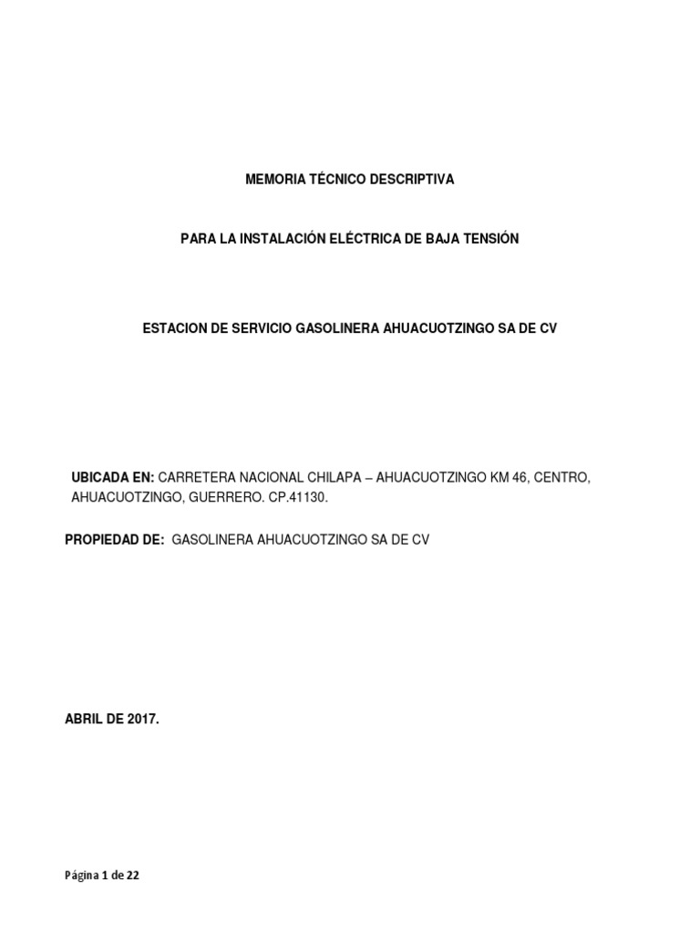 Memoria Estacion de Servicio Ahuacotzingo