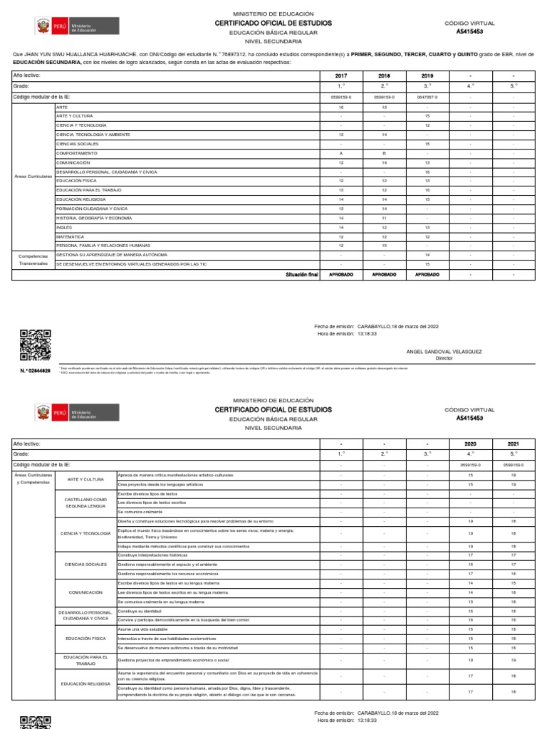 CERTIFICADO OFICIAL DE ESTUDIOS CÓDIGO VIRTUAL