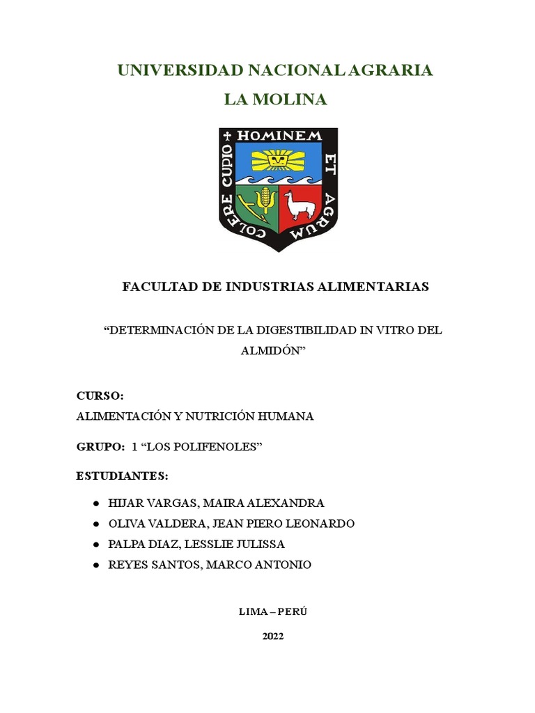 se aplicó a una muestra de chuño, se simuló una digestibilidad in vitro y los