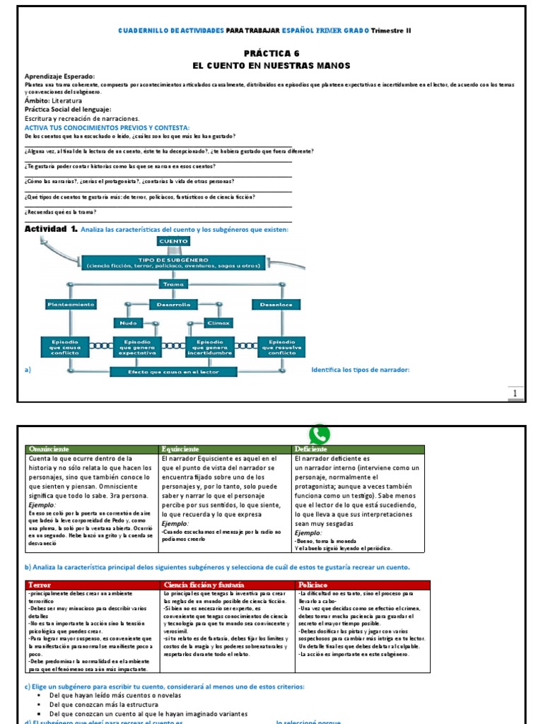 Actividad 1. Analiza las características del cuento y los subgéneros que existen: