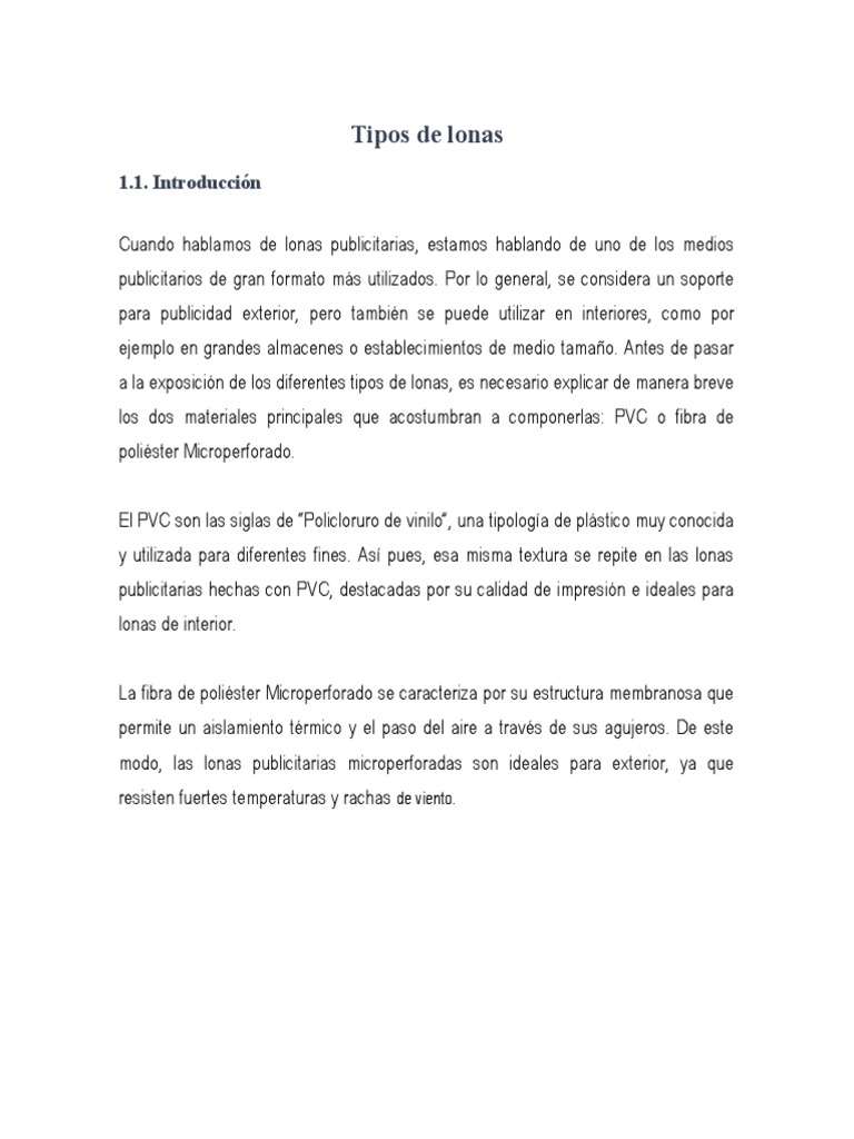 a la exposición de los diferentes tipos de lonas, es necesario explicar de manera breve