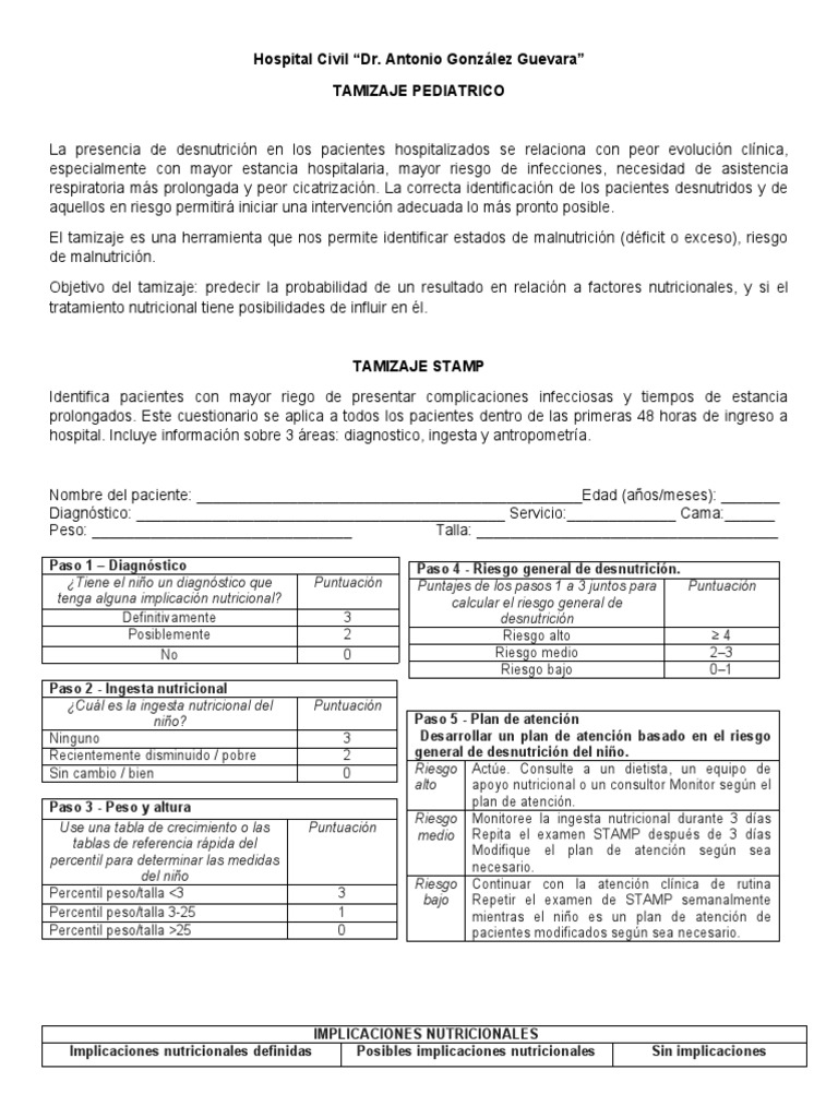 Consiste en un cuestionario para identificar el estado de nutrición de los pacientes a su ingreso al hospital,