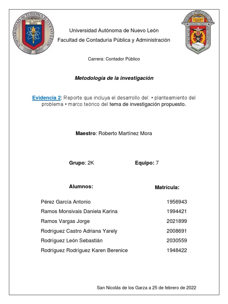 Evidencia 2: Reporte que incluya el desarrollo del: • planteamiento del