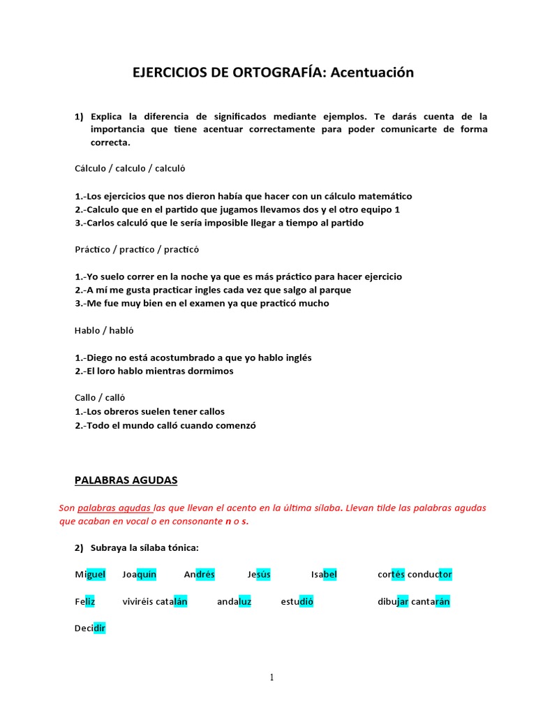 EJERCICIOS DE ORTOGRAFÍA: Acentuación