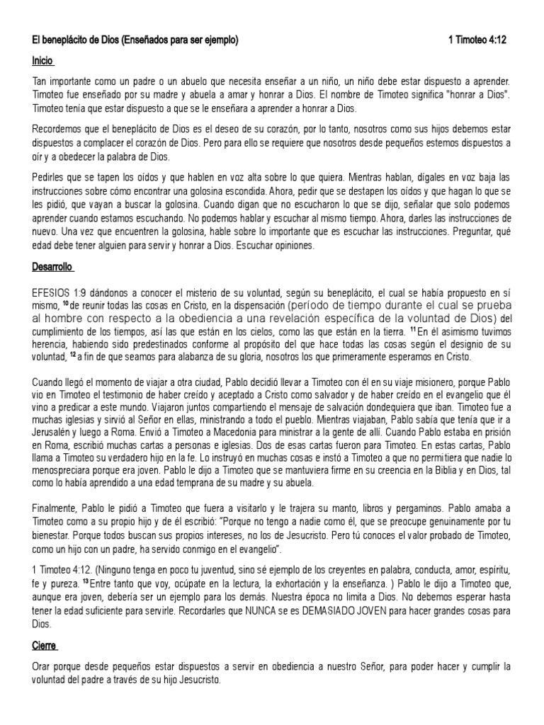 El beneplácito de Dios (Enseñados para ser ejemplo) 1 Timoteo 4:12