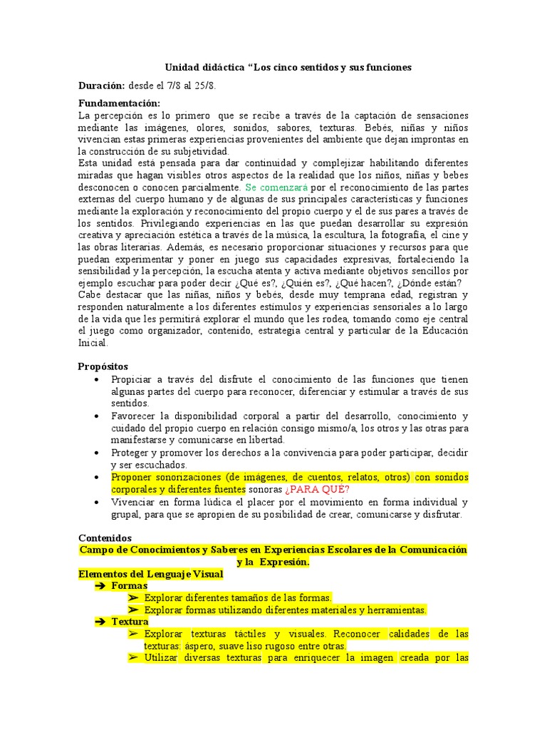 Unidad didáctica “Los cinco sentidos y sus funciones