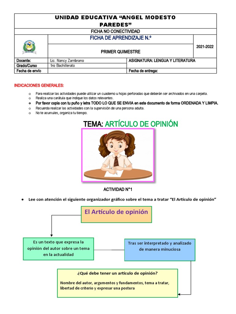 artículo de opinión, donde debes crear un título llamativo, introducción (4 líneas) , desarrollo (8 líneas) y