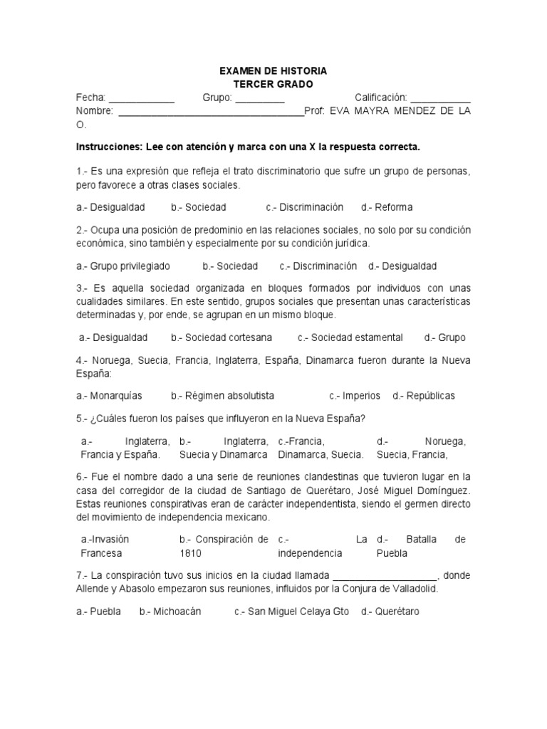 EXAMEN DE HISTORIA
