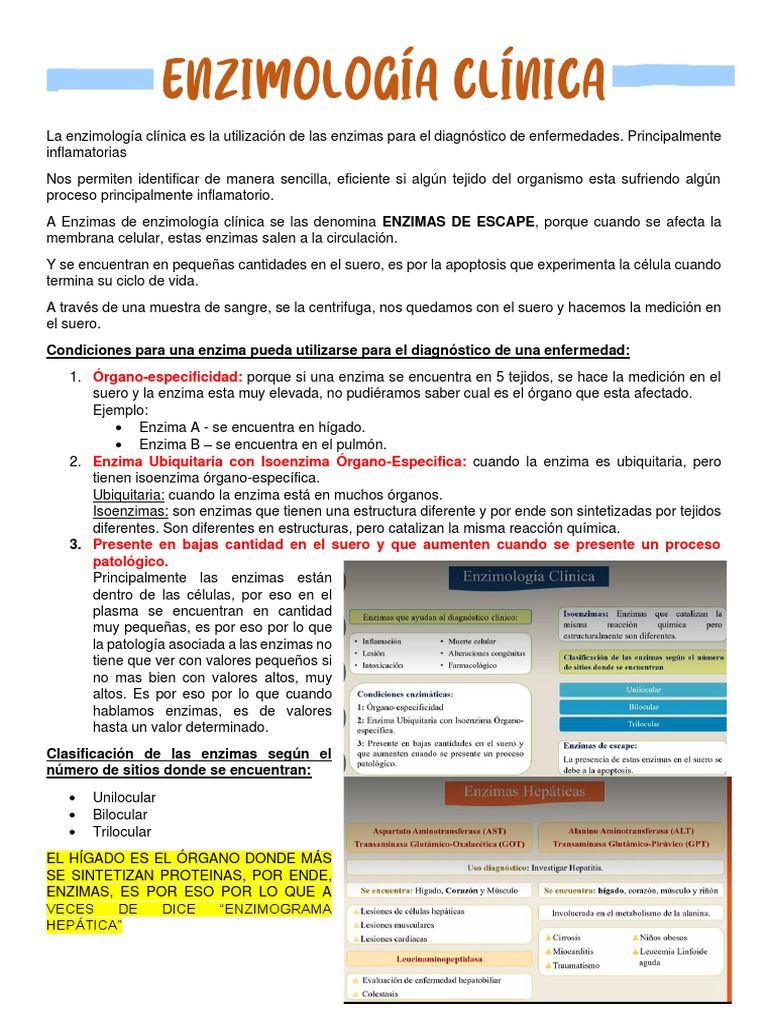 A Enzimas de enzimología clínica se las denomina ENZIMAS DE ESCAPE, porque cuando se afecta la