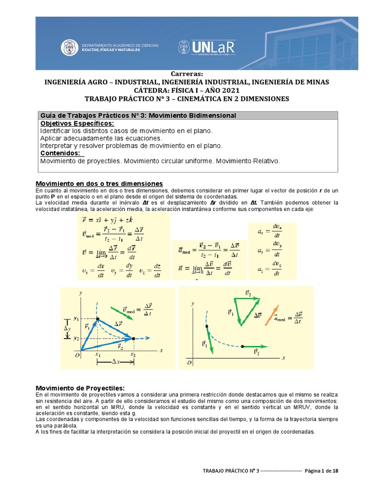 TRABAJO PRÁCTICO N° 3 – CINEMÁTICA EN 2 DIMENSIONES
