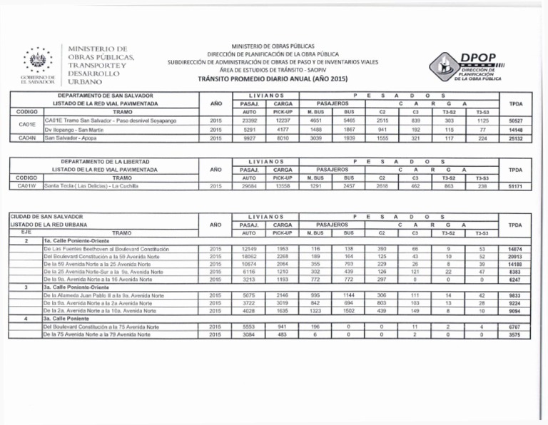 EL SALVA! K IR URBANO TRÁNSITO PROMEDIO DIARIO ANUAL (AÑO 2015) DE LA O BRA PÚ BLICA