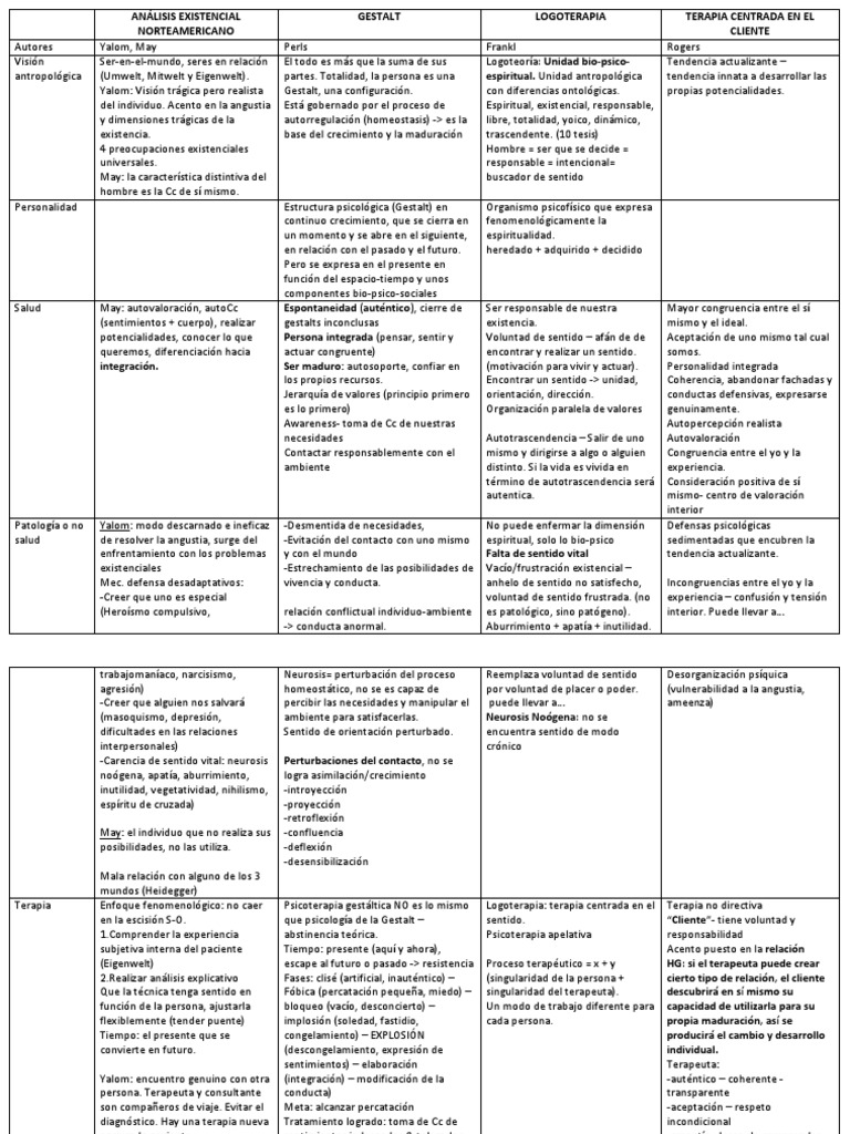 ANÁLISIS EXISTENCIAL GESTALT LOGOTERAPIA TERAPIA CENTRADA EN EL