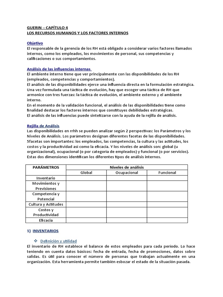 LOS RECURSOS HUMANOS Y LOS FACTORES INTERNOS