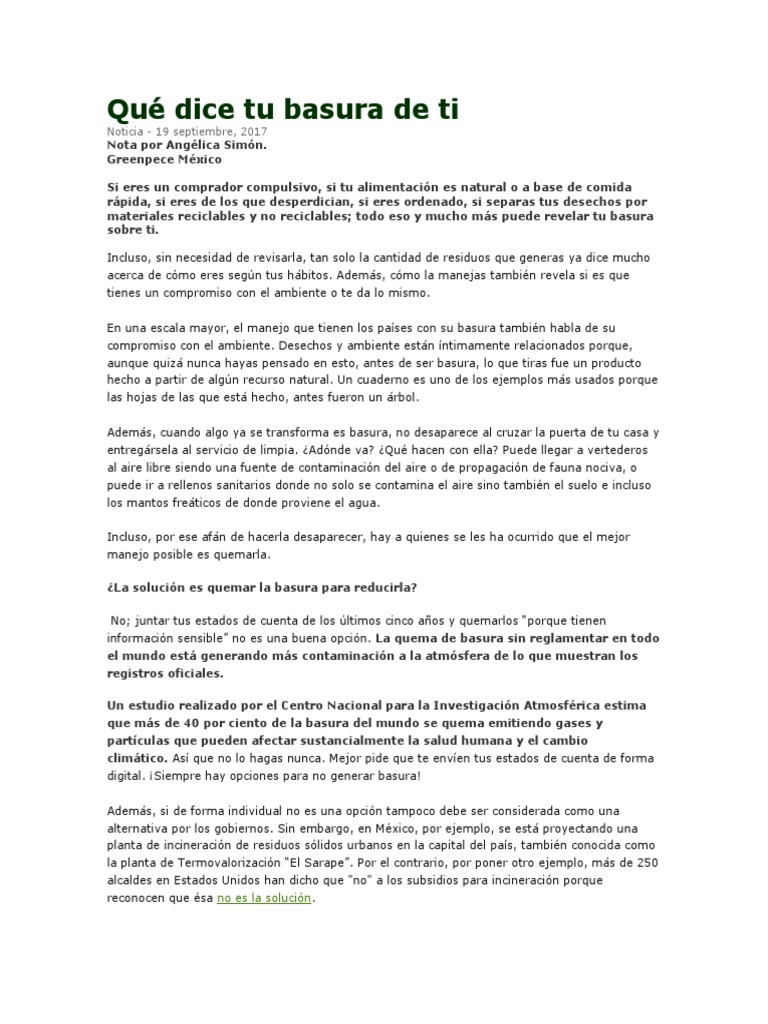 el problema del manejo de la basura, nosotros también podemos ir haciendo nuestra parte y
