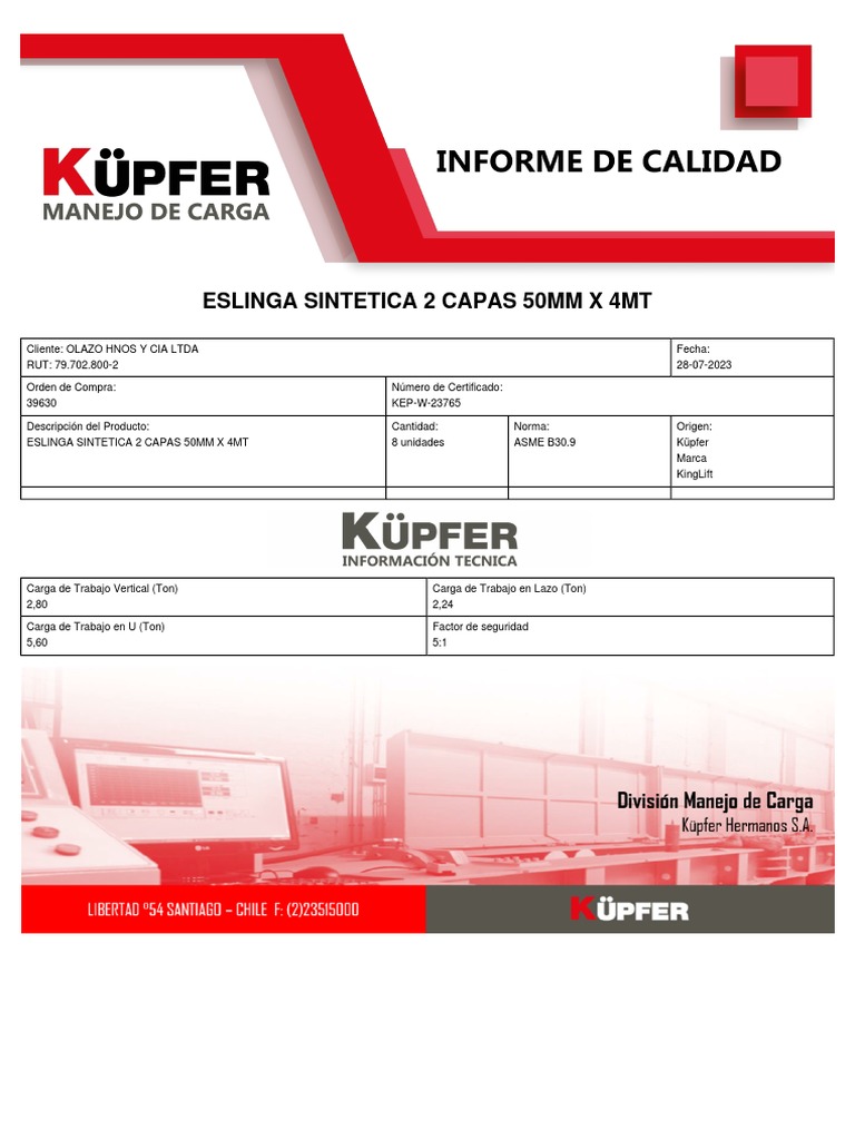 ESLINGA SINTETICA 2 CAPAS 50MM X 4MT 8 unidades ASME B30.9 Küpfer